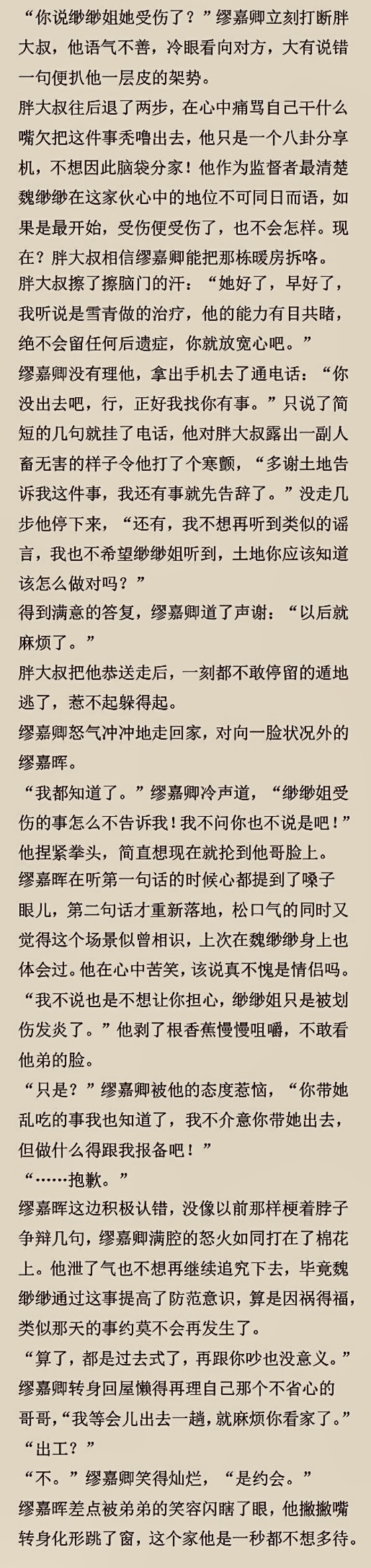 缪家是老牌驿使,结善之广叹为观止,但异怪脾气秉性各有千秋,一般只认相熟的人,少部分愿意给个好脸色,所以两兄弟只能从头打拼结自己的缘。就是这对兄弟的脾气是真的很冲,十三至十六岁期间招惹了无数人,接手父母的驿使生意后担心遇到当年的仇家也就做了伪装,当然秉性改是不可能会改的,以至后来威名广传。